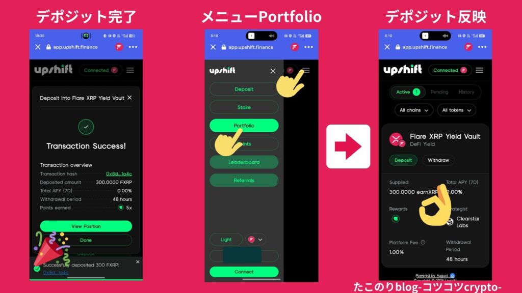 これでほったらかしXRPFi、つまりFXRPの自動運用とポイント付与が始まります!