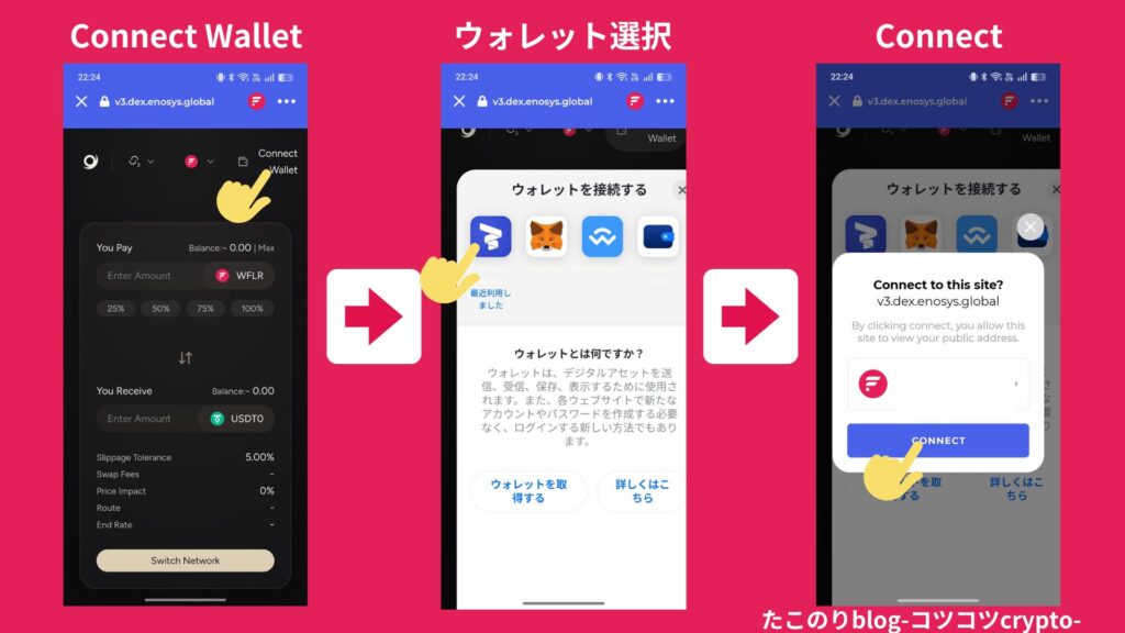 そこで、「Enosys」の基本となる「トークンのSwap(交換)」の手順を、実際の画面を使いながら初心者の方にも分かりやすく解説します!