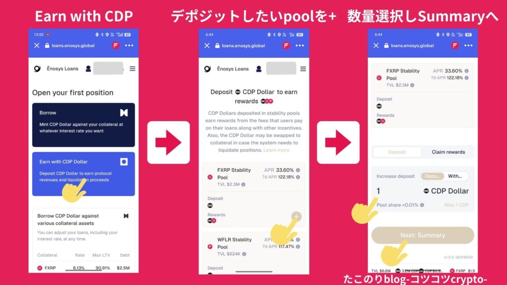 FXRPを担保にCDPを借入(ミント)できるのは分かったけど、「どうやって稼ぐの?」という点も整理してみました。