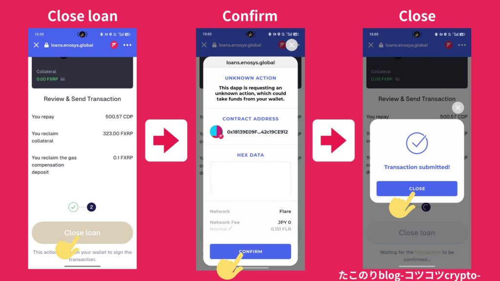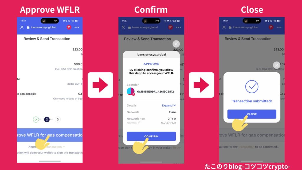 あとはウォレットで流れに沿ってトランザクションを進めていくだけです。