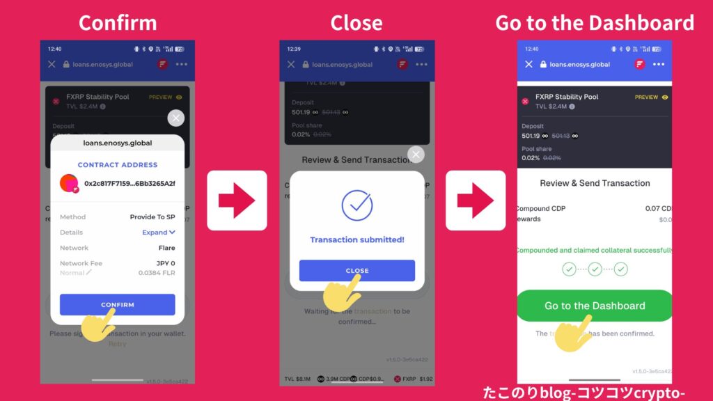 現時点ではEnosysでの利用に留まりますが、 今後他のDeFiでもCDP Dollarが使われるようになれば選択肢はさらに広がりそうです。